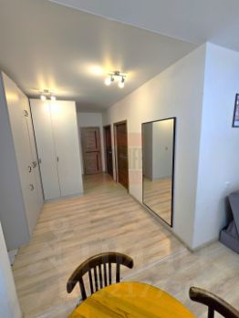 Квартира создаёт ощущение простора и свободы благодаря своей планировке. Вместительный шкаф в коридоре добавляет удобства в организации пространства.