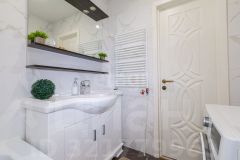 Стены и потолки идеально выравнены и окрашены качественной краской, на полу керамогранит в коридоре, в ванной комнате и санузле, а также зона в кухне-гостиной. К комнатах качественный ламинат.
