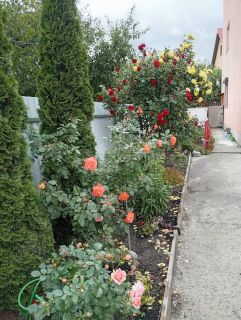 - Рядом с домом есть небольшая территория, где растут зелень, ягоды и потрясающей красоты и аромата розы.