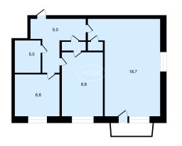 Квартира расположена на втором этаже пятиэтажного дома, построенного в 1968 году. Общая площадь — 42,7 кв. м, жилая площадь — 27,3 кв. м. Высота потолков — 2,7 метра. Две комнаты площадью 18,8 и 8,5 кв., кухня занимает 5,8 кв. м.