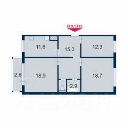 3 комнаты (12 кв.м, 18.9 кв.м и 18.7 кв.м) + раздельный санузел с современной сантехникой