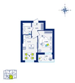 Продается 1-комн. квартира, 35,54 м²