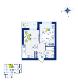 Общая площадь35,09 м²