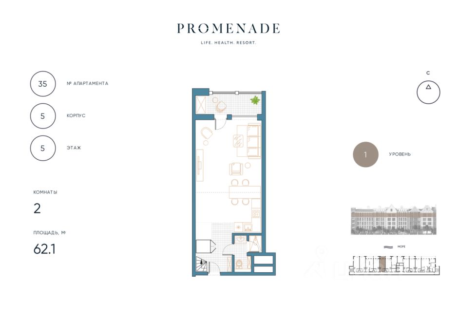 Дом сдан! Продаются готовые апартаменты с дизайнерским ремонтом в сданном комплексе Promenade (Променад). Адрес: Калининградская область, Светлогорск, Морской бульвар, корп. 5. Общая площадь апартаментов - 62,15 кв. м., этаж 5 из 5, секция 5. В состав гостинично-оздоровительного комплекса входит бювет с минеральной водой, отель международного класса, спа-комплекс, фитнес-центр и многопрофильная клиника. Первая береговая линия. Выход на пляж, протяженностью 15 км. Пешеходная зона отдыха. Авторская архитектура. Монолитные дома с вентилируемыми фасадами. Панорамные окна с видом на море из всех апартаментов. Шумоизолирующие стеклопакеты. Высокие потолки 3 м. Современная инженерия. Индивидуальное кондиционирование. Система контроля и управления доступом. Умные лифты. Индивидуальный тепловой пункт. Выгодная локация (близость к историческому центру). Динамично развивающаяся инфраструктура. На первых этажах расположена галерея шопинга, объекты социально-бытового назначения, кафе, рестораны. Многоуровневая система безопасности. Охранная сигнализация и видеонаблюдение. Консьерж-сервис 24/7. Апартаменты идеально подходят для постоянного проживания, отдыха или инвестиций. Возможно приобретение "под ключ" с мебелью и бытовой техникой. Высоколиквидный актив - начнут окупать вложения сразу после покупки. Собственная управляющая компания. Помощь в сдаче апартаментов в аренду. Компания-застройщик - СЗ Раушен Хотел Ресорт. Стоимость апартаментов - 49 720 000 руб. Более подробная информация по телефону.