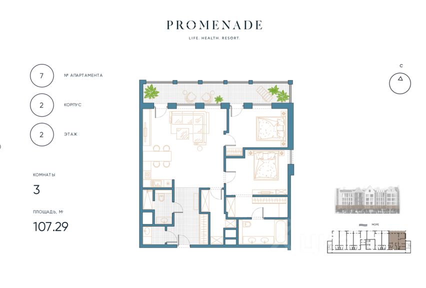 Дом сдан! Продаются готовые апартаменты с дизайнерским ремонтом в сданном комплексе Promenade (Променад). Адрес: Калининградская область, Светлогорск, Морской бульвар, корп. 2. Общая площадь апартаментов - 107,3 кв. м., этаж 2 из 5, секция 2. В состав гостинично-оздоровительного комплекса входит бювет с минеральной водой, отель международного класса, спа-комплекс, фитнес-центр и многопрофильная клиника. Первая береговая линия. Выход на пляж, протяженностью 15 км. Пешеходная зона отдыха. Авторская архитектура. Монолитные дома с вентилируемыми фасадами. Панорамные окна с видом на море из всех апартаментов. Шумоизолирующие стеклопакеты. Высокие потолки 3 м. Современная инженерия. Индивидуальное кондиционирование. Система контроля и управления доступом. Умные лифты. Индивидуальный тепловой пункт. Выгодная локация (близость к историческому центру). Динамично развивающаяся инфраструктура. На первых этажах расположена галерея шопинга, объекты социально-бытового назначения, кафе, рестораны. Многоуровневая система безопасности. Охранная сигнализация и видеонаблюдение. Консьерж-сервис 24/7. Апартаменты идеально подходят для постоянного проживания, отдыха или инвестиций. Возможно приобретение "под ключ" с мебелью и бытовой техникой. Высоколиквидный актив - начнут окупать вложения сразу после покупки. Собственная управляющая компания. Помощь в сдаче апартаментов в аренду. Компания-застройщик - СЗ Раушен Хотел Ресорт. Стоимость апартаментов - 81 337 500 руб. Более подробная информация по телефону.
