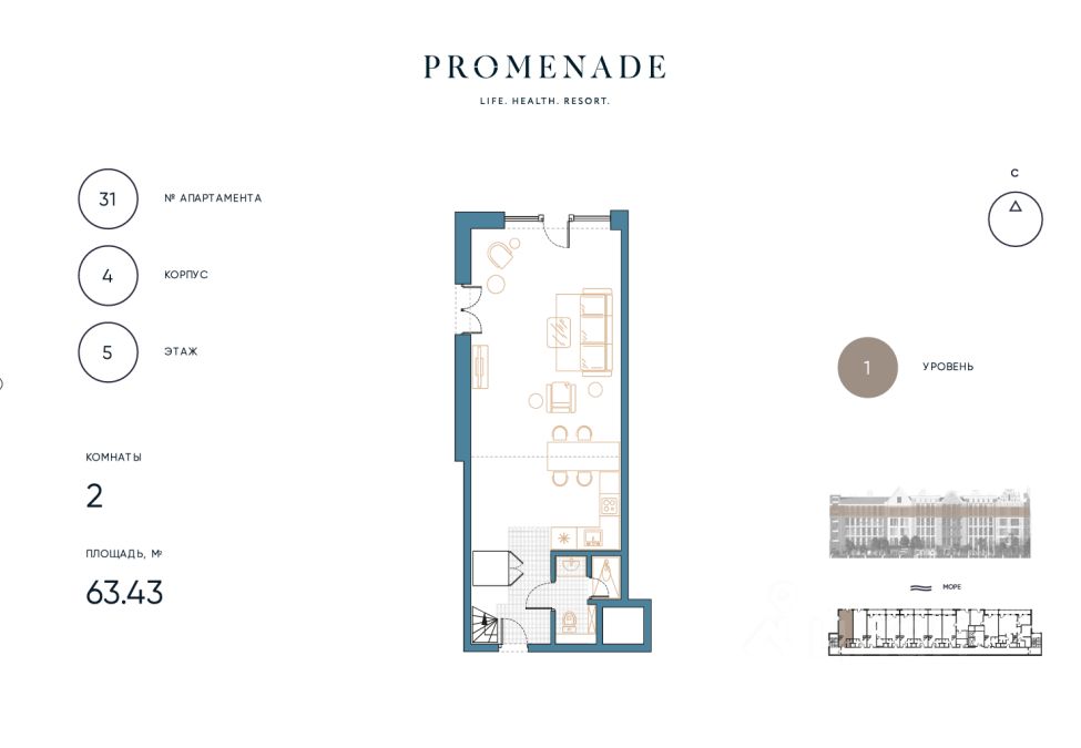 Дом сдан! Продаются готовые апартаменты с дизайнерским ремонтом в сданном комплексе Promenade (Променад). Адрес: Калининградская область, Светлогорск, Морской бульвар, корп. 4. Общая площадь апартаментов - 63,43 кв. м., этаж 5 из 5, секция 4. В состав гостинично-оздоровительного комплекса входит бювет с минеральной водой, отель международного класса, спа-комплекс, фитнес-центр и многопрофильная клиника. Первая береговая линия. Выход на пляж, протяженностью 15 км. Пешеходная зона отдыха. Авторская архитектура. Монолитные дома с вентилируемыми фасадами. Панорамные окна с видом на море из всех апартаментов. Шумоизолирующие стеклопакеты. Высокие потолки 3 м. Современная инженерия. Индивидуальное кондиционирование. Система контроля и управления доступом. Умные лифты. Индивидуальный тепловой пункт. Выгодная локация (близость к историческому центру). Динамично развивающаяся инфраструктура. На первых этажах расположена галерея шопинга, объекты социально-бытового назначения, кафе, рестораны. Многоуровневая система безопасности. Охранная сигнализация и видеонаблюдение. Консьерж-сервис 24/7. Апартаменты идеально подходят для постоянного проживания, отдыха или инвестиций. Возможно приобретение "под ключ" с мебелью и бытовой техникой. Высоколиквидный актив - начнут окупать вложения сразу после покупки. Собственная управляющая компания. Помощь в сдаче апартаментов в аренду. Компания-застройщик - СЗ Раушен Хотел Ресорт. Стоимость апартаментов - 50 744 000 руб. Более подробная информация по телефону.