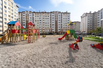 В жилом комплексе есть детская игровая площадка, продуктовые магазины, аптека, центр детского развития.