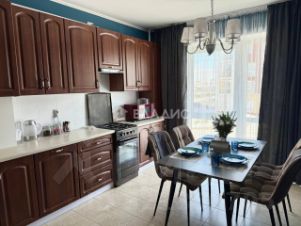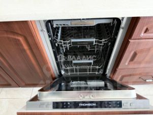 Оснащенная всей необходимой бытовой техникой для комфортного проживания - плитой, духовкой, посудомоечной машиной, микроволновой печью, электрочайником, холодильником. Удобный большой стол и стулья.