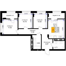 Трехкомнатная квартира — это просторное и светлое жилье, созданное для жизни без компромиссов. Три просторные изолированные комнаты позволяют каждому члену семьи иметь свое личное пространство: спальня, детская, кабинет или гостиная — все организуется легко и удобно. Благодаря увеличенному остеклению, интерьер наполняется естественным светом, визуально расширяется и создает ощущение легкости и открытости. Лоджия не только дополняет квартиру практичной зоной для хранения или отдыха.