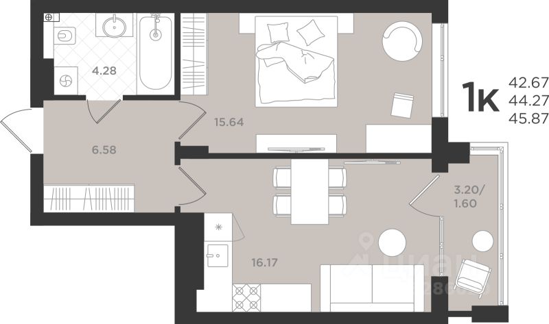 Продаётся 1-комнатная квартира в строящемся доме (Дом 2), срок сдачи: IV-кв. 2026, общей площадью 44.27 кв.м., на 1 этаже. Многоквартирный жилой дом комфорт-класса "Шелест" расположен в Светлогорске на улице Песочная в окружении высоких сосен является настоящим уголком отдыха от городской суеты и шума.