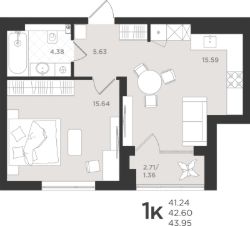 Продаётся 1-комнатная квартира в строящемся доме (Дом 2), срок сдачи: IV-кв. 2026, общей площадью 42.6 кв.м., на 2 этаже. Многоквартирный жилой дом комфорт-класса "Шелест" расположен в Светлогорске на улице Песочная в окружении высоких сосен является настоящим уголком отдыха от городской суеты и шума.