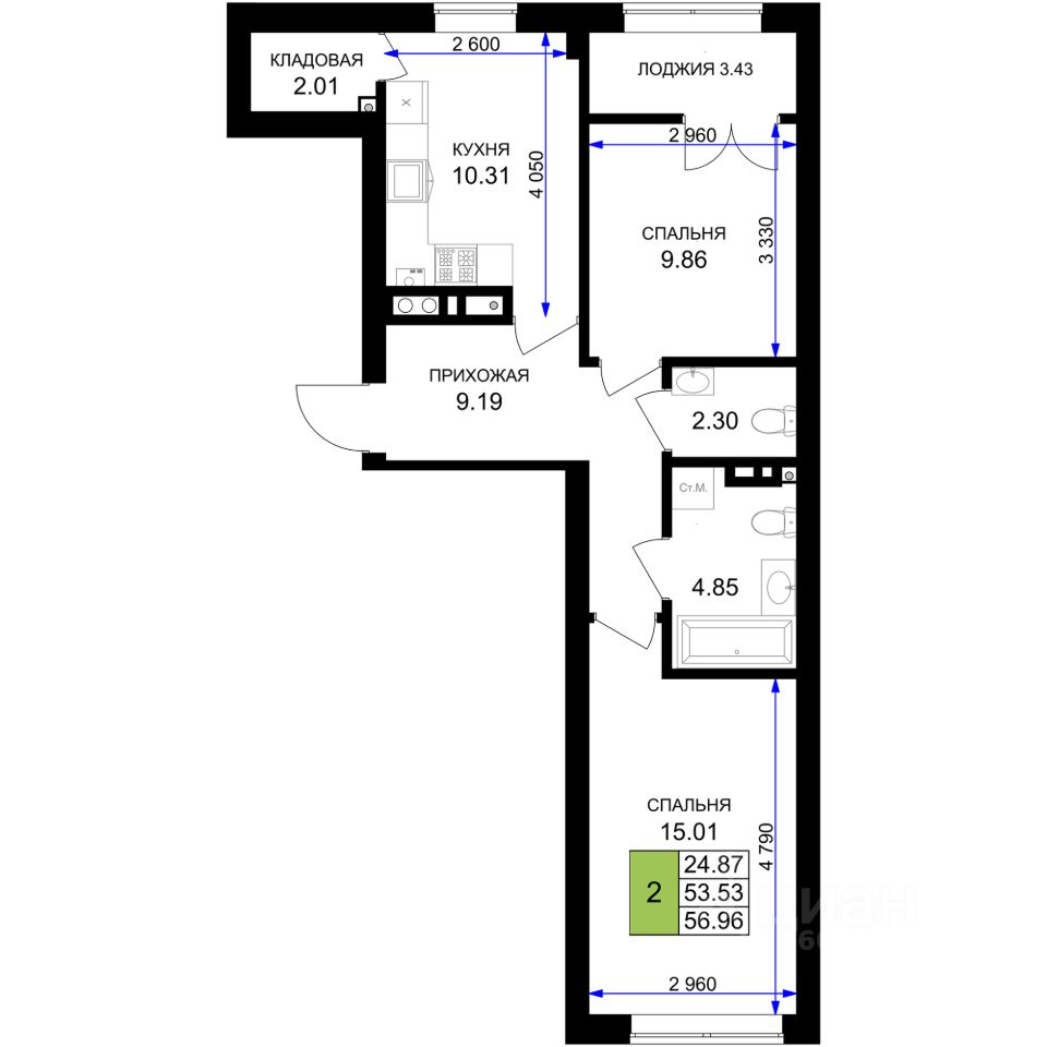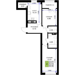 Продаётся 2-комнатная квартира в строящемся доме (Дом 7 (2 очередь)), срок сдачи: I-кв. 2027, общей площадью 56.96 кв.м., на 5 этаже. Новый жилой комплекс "Включи" от застройщика "СпецСтройКубань" расположен в г. Гурьевск в районе Гурьевского шоссе.