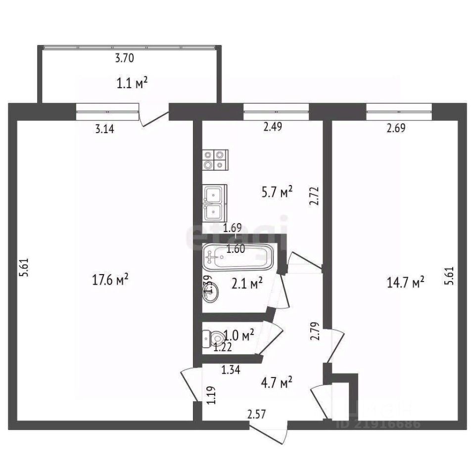 Продается двухкомнатная квартира 46 м2 в центральном районе г.Калининграда