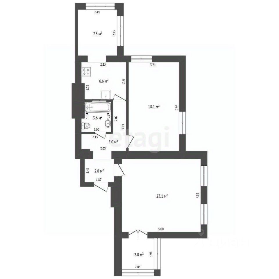 Потолки высотой 3,4 м2 значительно добавляют простора в комнатах. Квартира располагается на 2 этаже.