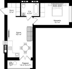 Продаётся 1-комнатная квартира в строящемся доме (Дом 1), срок сдачи: IV-кв. 2027, общей площадью 40.4 кв.м., на 1 этаже.
