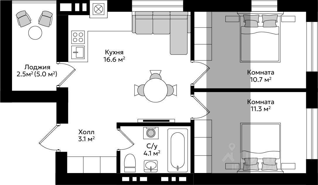 Продаётся 2-комнатная квартира в строящемся доме (Дом 1), срок сдачи: IV-кв. 2027, общей площадью 60 кв.м., на 7 этаже.