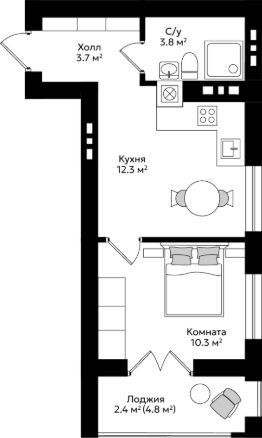 Продаётся 1-комнатная квартира в строящемся доме (Дом 2), срок сдачи: IV-кв. 2027, общей площадью 32.5 кв.м., на 1 этаже.