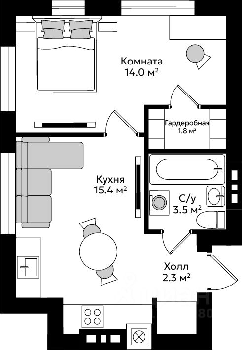 Пентхаусы и уютные квартиры для семей с кухней гостиной, в доме комфорт класса с лифтом. Смарт планировки с мастер спальней родителей (собственный санузел и местами хранения).