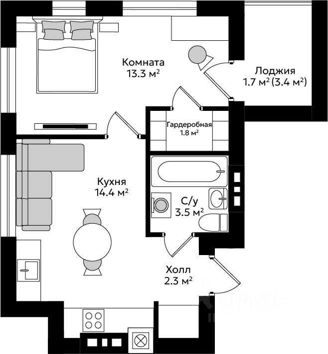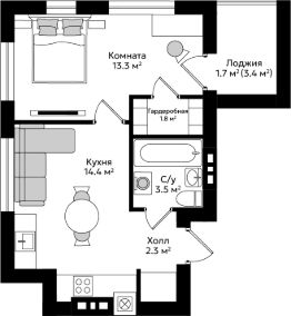 Продаётся 1-комнатная квартира в строящемся доме (Дом 3), срок сдачи: IV-кв. 2027, общей площадью 37 кв.м., на 6 этаже.