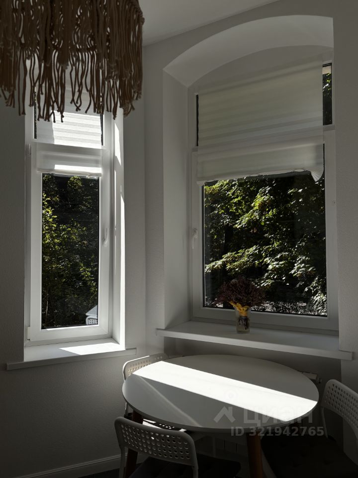 Квартира светлая, высокие потолки до 3,1 м. Интерьер в белых тонах, при желании можно добавить цвета и ярких акцентов, есть место для реализации ваших идей. Самое уютное место в квартире-эркер на кухне с тремя высокими окнами. Комната просторная, квадратной формы. В санузле, несмотря на небольшую площадь, разместилось все самое необходимое. Вид из окон на памятник архитектуры.