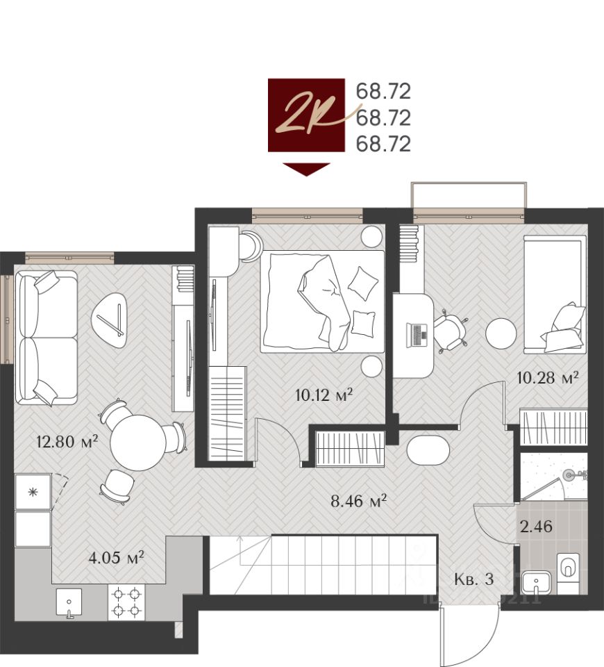 -Каждое помещение имеет продуманные пропорции, высота потолков 3 метра.