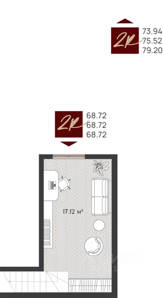 -На пятом этаже двухуровневые квартиры, высота потолков первого уровня — 2,7 метра, дополнительно высота антресоли составит от 4,8 метров.