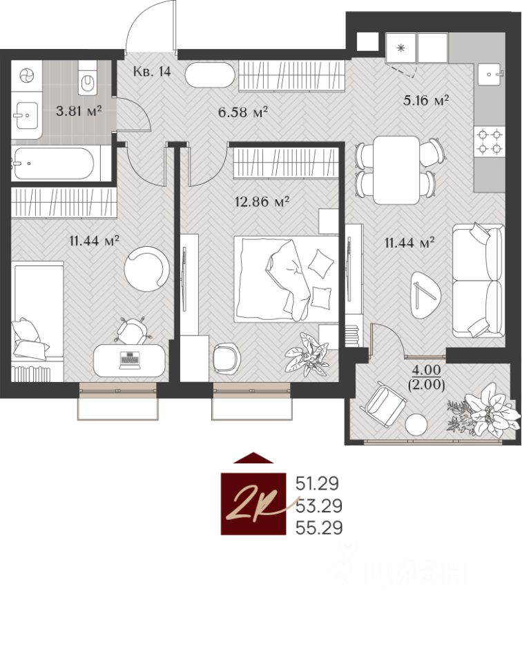 -Квартиры с эркером, которые добавляют помещениям особую выразительность и придают дополнительный естественный свет.