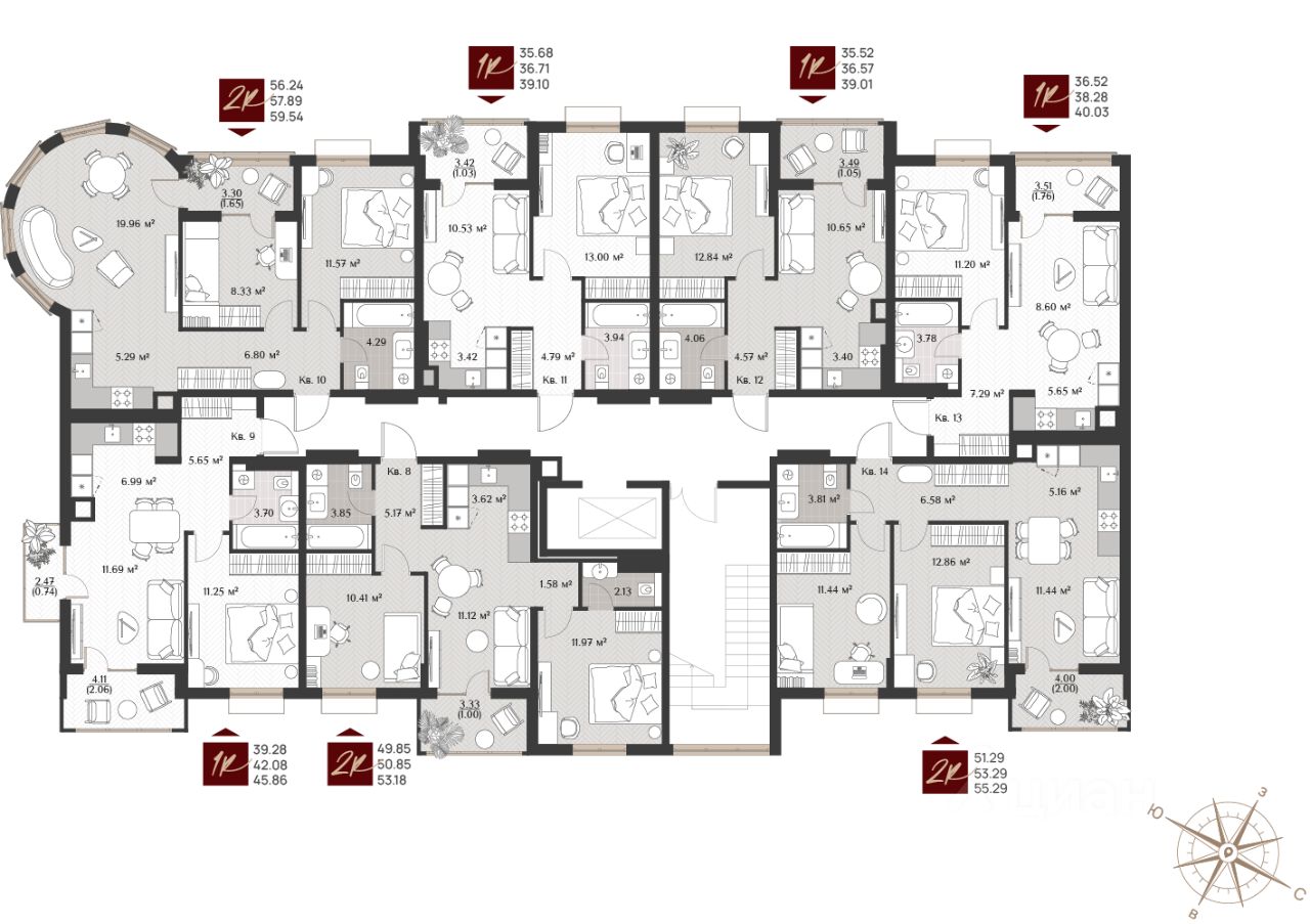 -В клубном доме 34 эксклюзивных лотов разных форматов: одно-, двух-, комнатные и просторные двухуровневые квартиры.