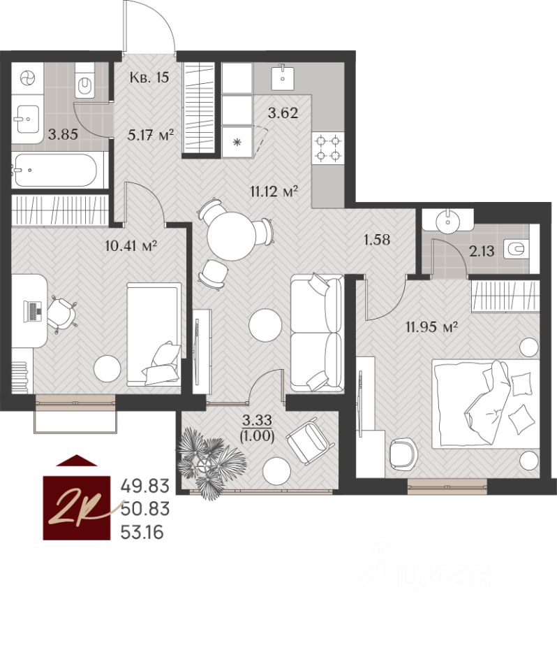 -Каждое помещение имеет продуманные пропорции, высота потолков 3 метра.