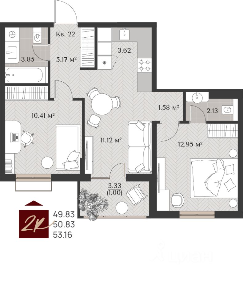 Общая площадь50,83 м²