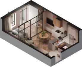 • Фасад дома облицован клинкерной плиткой и декоративной штукатуркой. Придомовая территория апартаментов будет благоустроена в соответствии с планами по озеленению и обеспечению досуга жителей апартаментов.