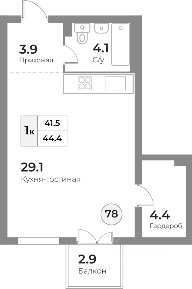 Общая площадь44,5 м²