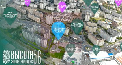 Дом расположился в Ленинградском районе города Калининграда. За счет удобного географического положения можно быстро и комфортно добраться в любую нужную точку города, в шаговой доступности все необходимое для комфортной и беззаботной жизни. Жилой комплекс "Высота 56" является точкой притяжения счастья и благополучия, это новая среда для жизни и отдыха в перспективно развивающемся районе Калининграда.