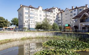 * Благоустроенная придомовая территория, детская и спортивные площадки, парковка за шлагбаумом во дворе.