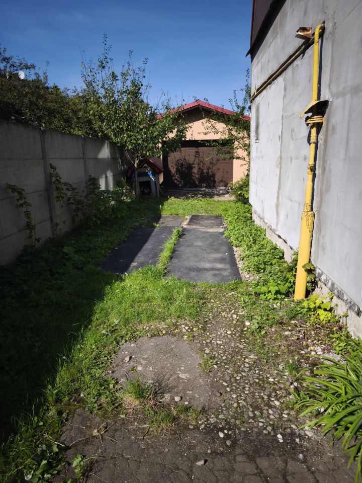 Гараж из аэроблока 26м.кв. (отдельный кадастр.номер) с электричеством, автоматич. воротами, деревянным стеллажом. Теплый, стены обшиты дсп, на полу плитка. Также во дворе 2 парковочных места, засыпаны галькой, двор огорожен забором с воротами и калиткой.
