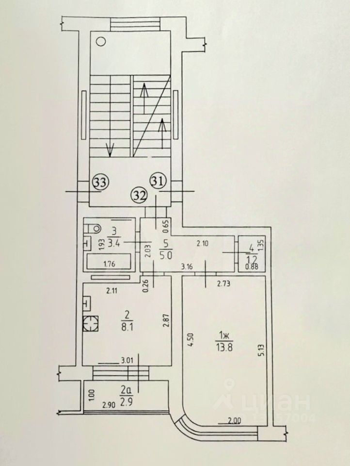 - Общая площадь 31,5 м
