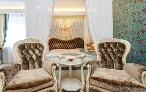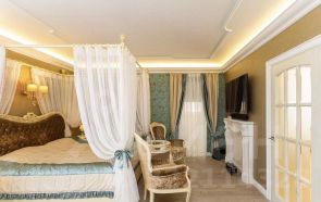 Спальня с Итальянской мебелью площадью 22 кв.м. с примыкающим санузлом 14 кв.м. и просторной гардеробной 18,5 кв.м. станет вашим личным уголком уюта и релаксации.