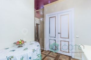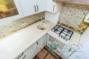 В квартире выполнена функциональная перепланировка: площадь кухни разделена на две части - выделена кухонная зона, оборудована вторая комната и продуман второй санузел.
