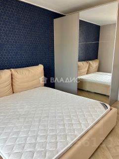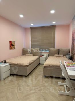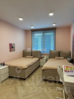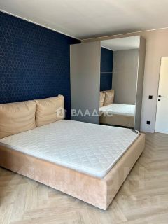 •Уютная спальня (19,8 м²) с дизайнерской кроватью и рабочей зоной.
