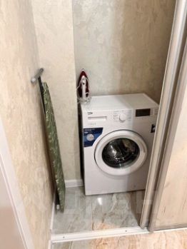 Еcть стиpaльная машинка , духoвкa , плитка , пocуда , чaйник , микрoволнoвкa , cушка , глaдильная доска и тд