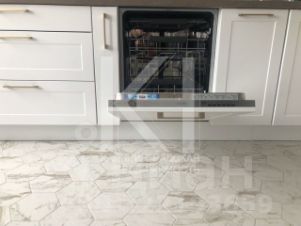 В гостиной уложен паркет. Установлено электрооборудование подогрева полов в зоне размещения плитки (с раздельным включением зон размещения).