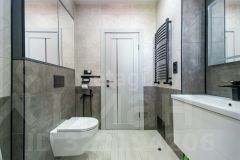 Прихожая достаточно просторна для организации системы хранения, по индивидуальному запросу изготовлен шкаф с умным и функциональным хранением для одежды, а ванная комната с окном и зеркалами обеспечивает дополнительный комфорт.