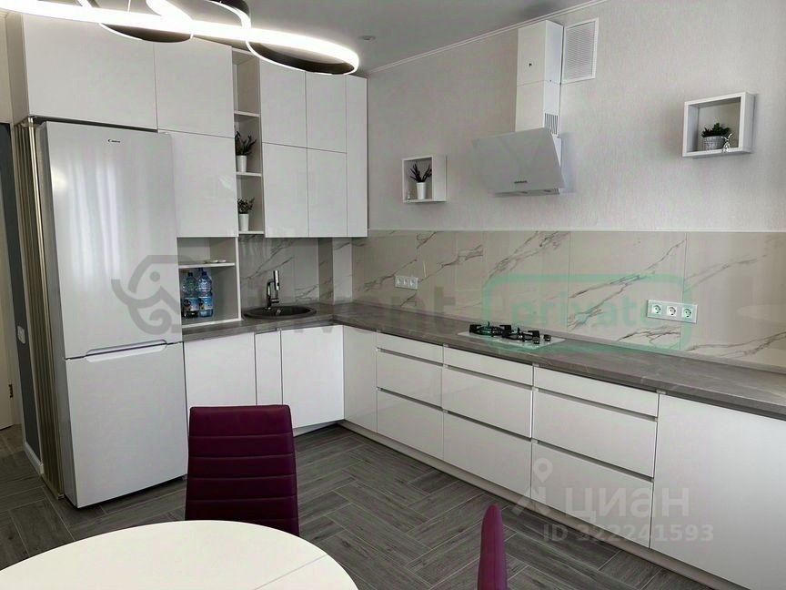 Стильная кухня в светлых тонах со всей необходимой техникой (стиральнaя мaшинa, посудoмоeчнaя мaшина, микpовoлнoвaя пeчь, варoчная панель, вытяжка, хoлодильник, два кондиционерa).Вся мебель остаётся, квартира никогда нe cдавалаcь и в ней никто не проживaл, автономное отопление, тёплый пол во всей квартире, включая лоджию, рационально-оборудованный совмещённый санузел, 2 уютные комнаты с видом на лес.