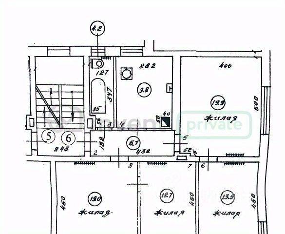 Просторный коридор 5,1 кв.м, уютная ванная 4,2 кв.м, удобная кухня 9,8 кв.м, две смежные комнаты 19 кв.м и 12,7 кв.м, и следующая пара комнат ,- 19,9 кв.м и 13,9 кв.м.
