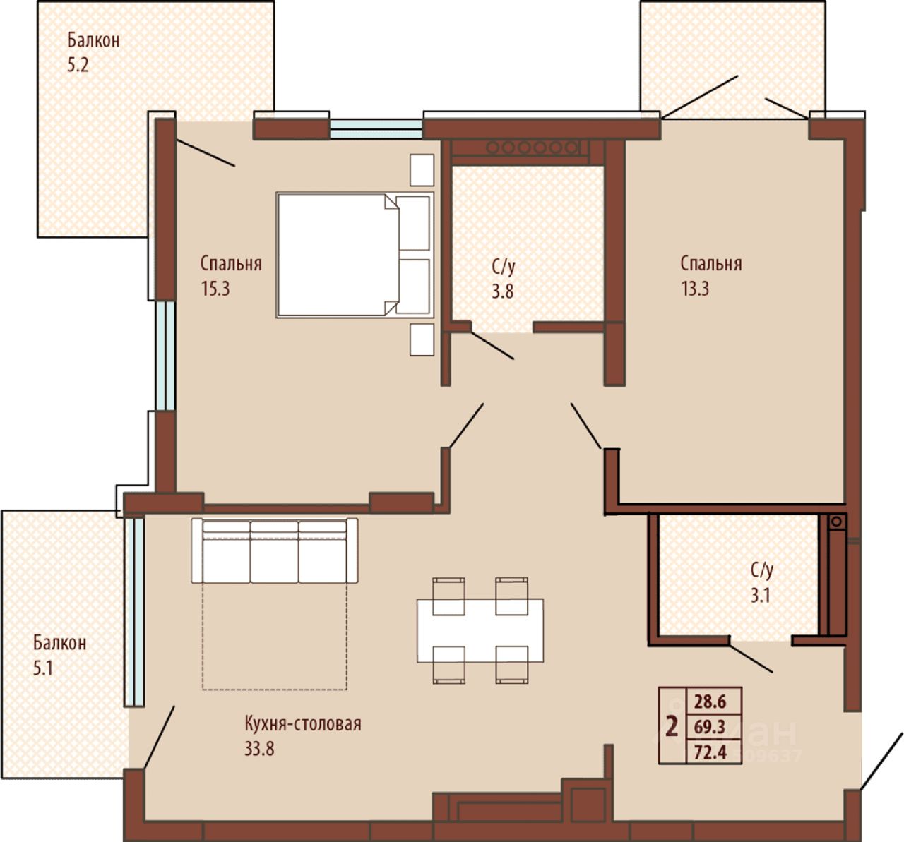 - предчистовая отделка (возможна отделка white box от застройщика)