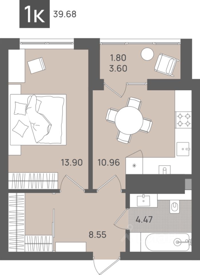 Общая площадь39,68 м²