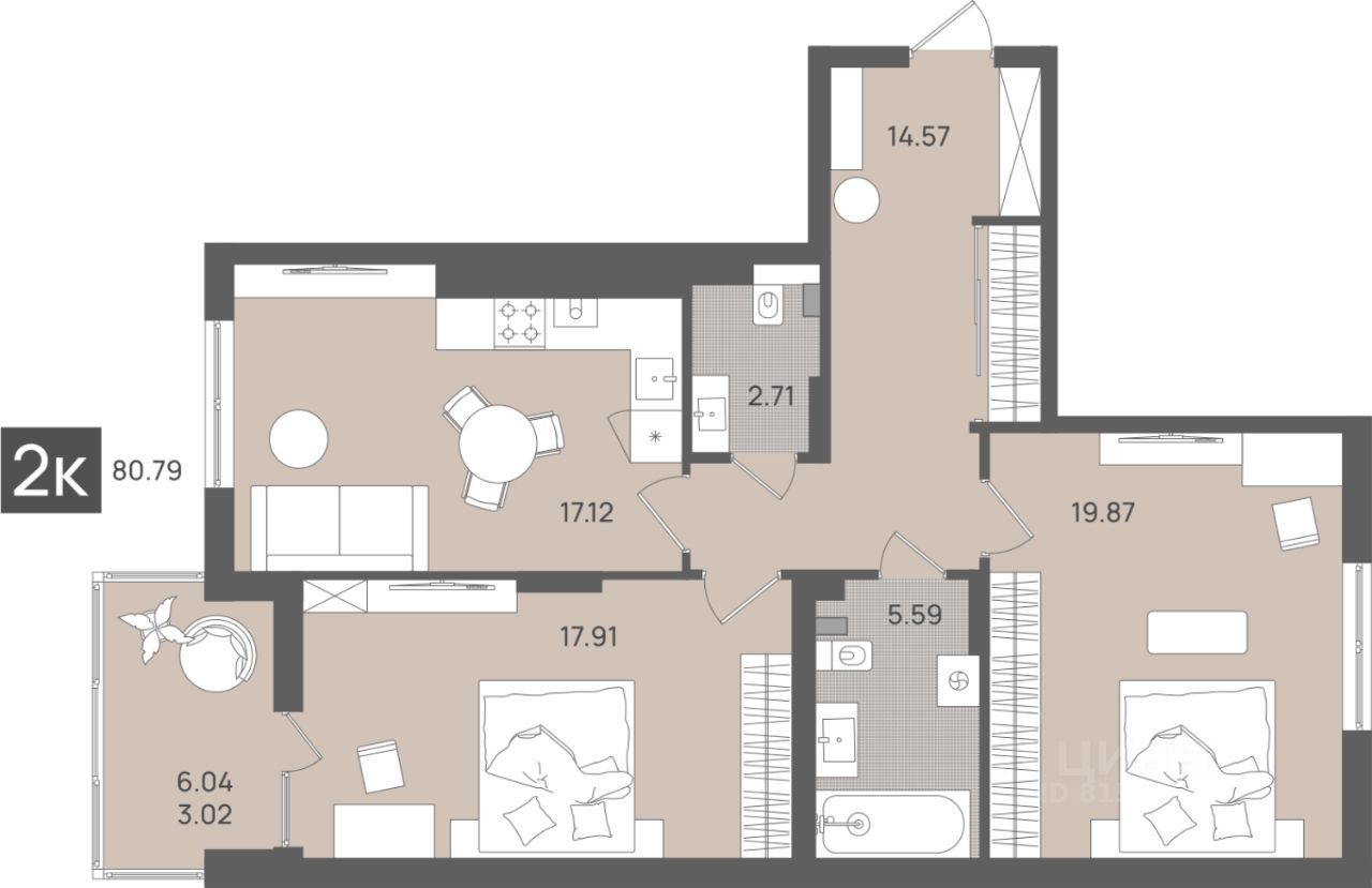 Общая площадь80,79 м²