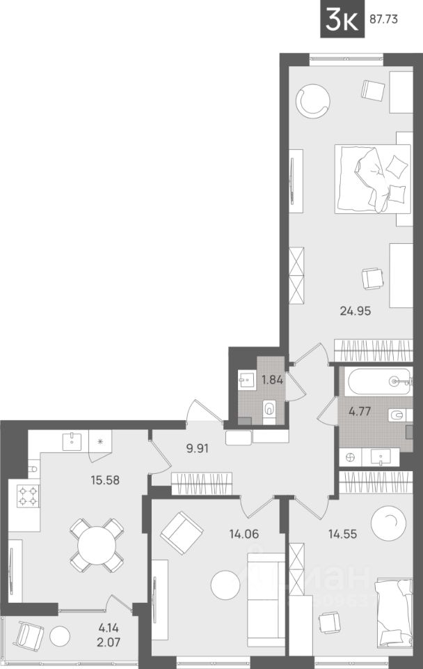 Общая площадь87,73 м²