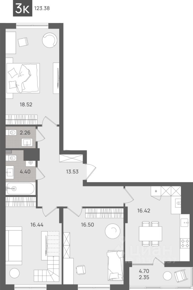 Общая площадь123,38 м²
