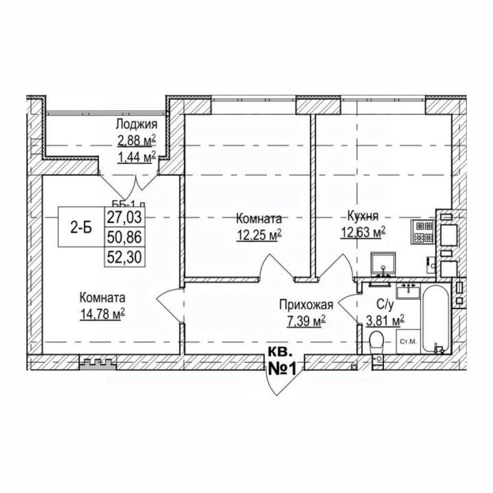 52,9 м²